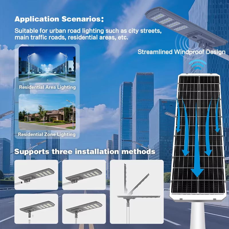 Extra-large monocrystalline silicon solar panels for more efficient power conversion, greater energy savings, and brighter illumination.